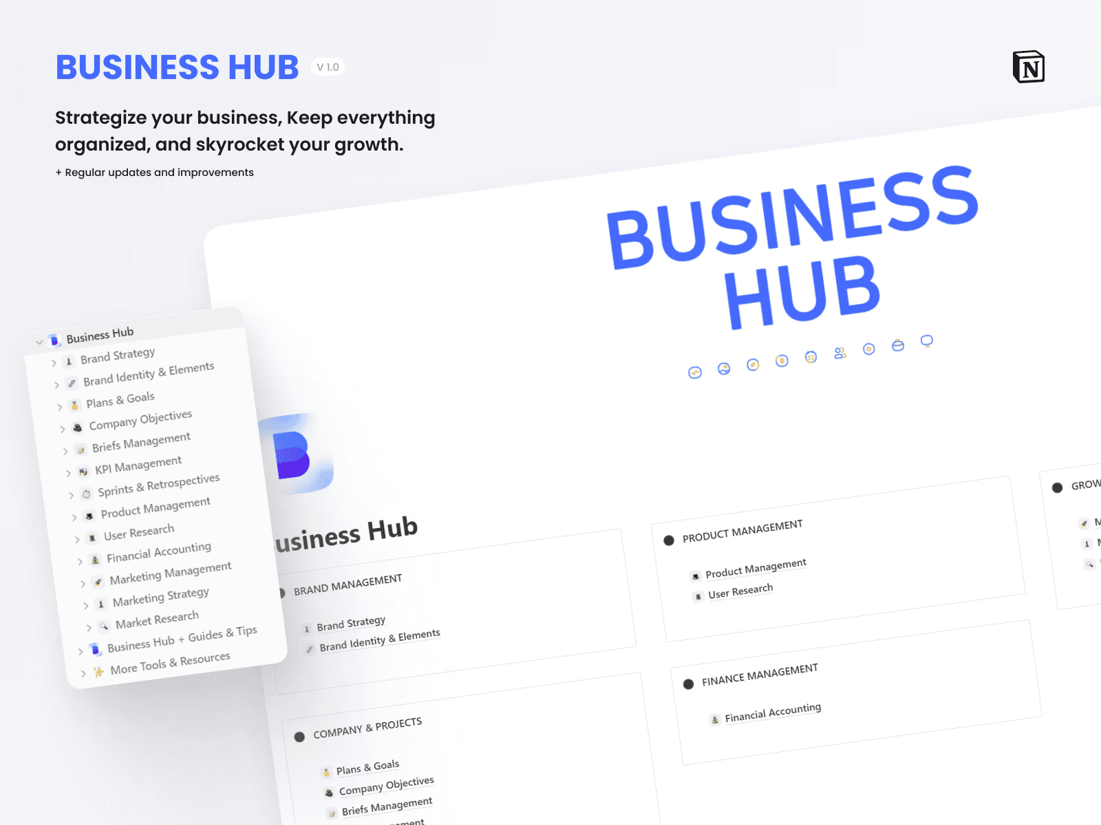 All-in-one workspace for your business. No more app juggling – manage everything in Notion with Business Hub. It's the ultimate template for SaaS, digital products, startups, and online businesses. Track products, marketing, teams, projects, finances, and more in one place. Simplify your business management.