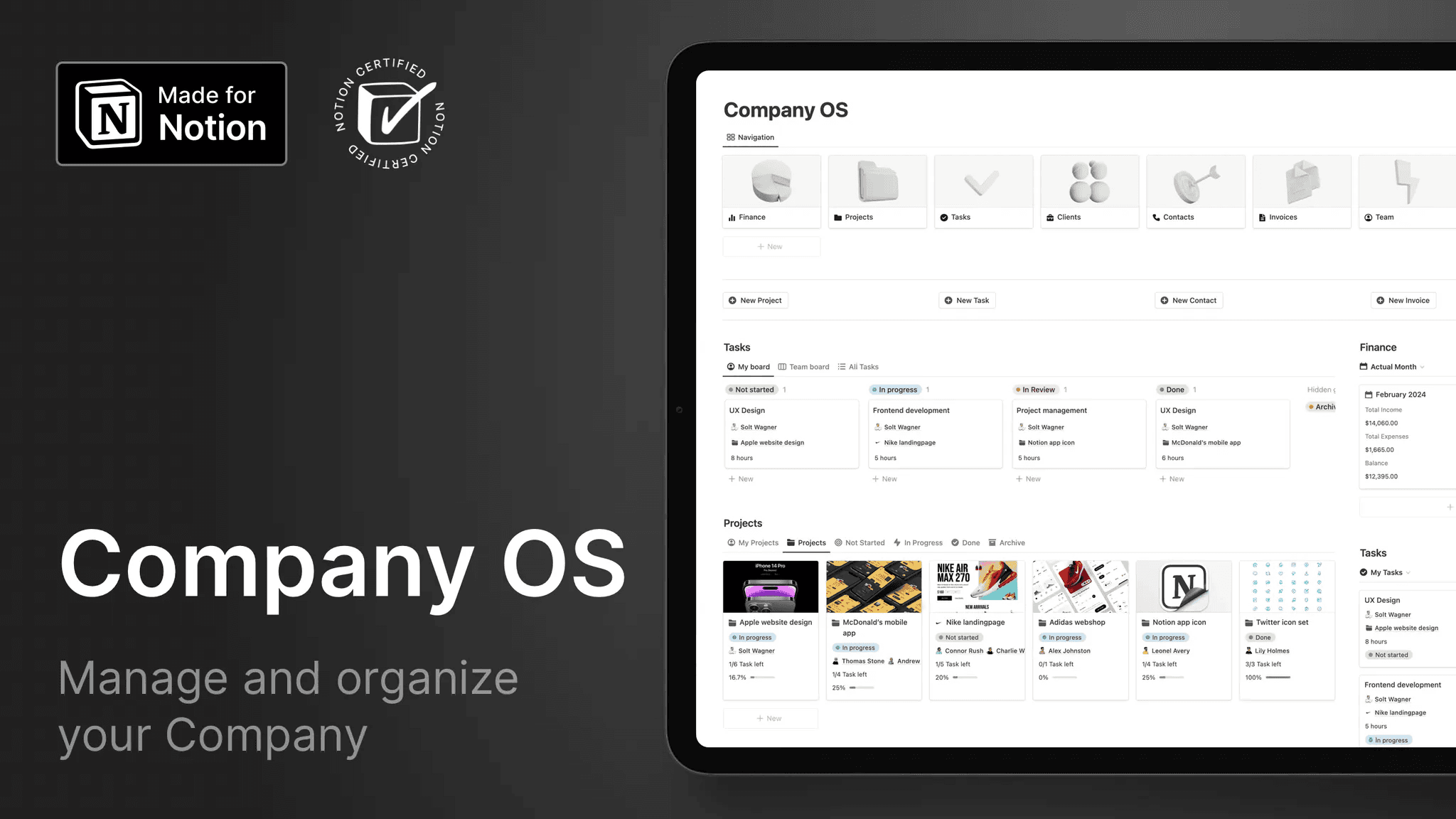 Manage every aspect of your business in one streamlined workspace. This Notion Company OS includes: