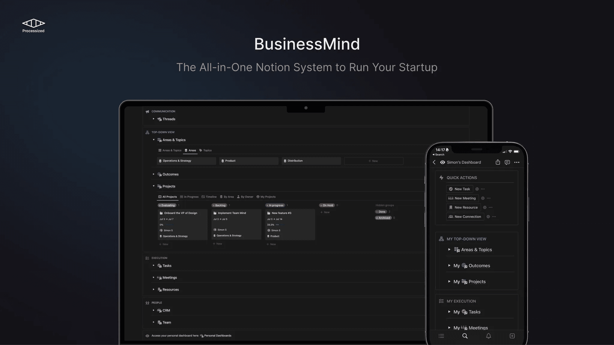 BusinessMind is a modern Notion business system designed to increase productivity, streamline team operations, and enhance collaboration. Whether you're working solo or managing a team, this template helps you align projects, resources, and meetings effortlessly.