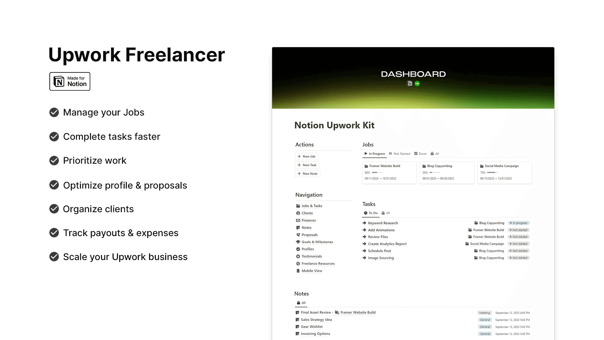 The ultimate Notion dashboard for Upwork freelancers. Manage: