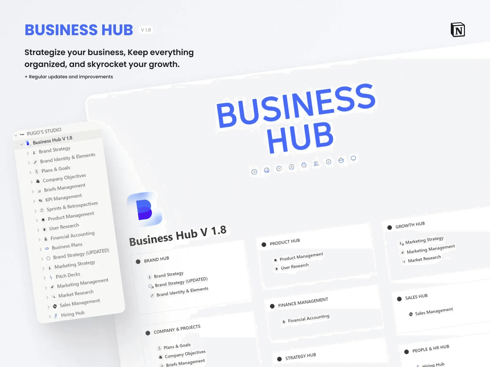 A premium all-in-one Notion system to manage every part of your business. With 15 dedicated pages and over 20 video tutorials, this template covers:
