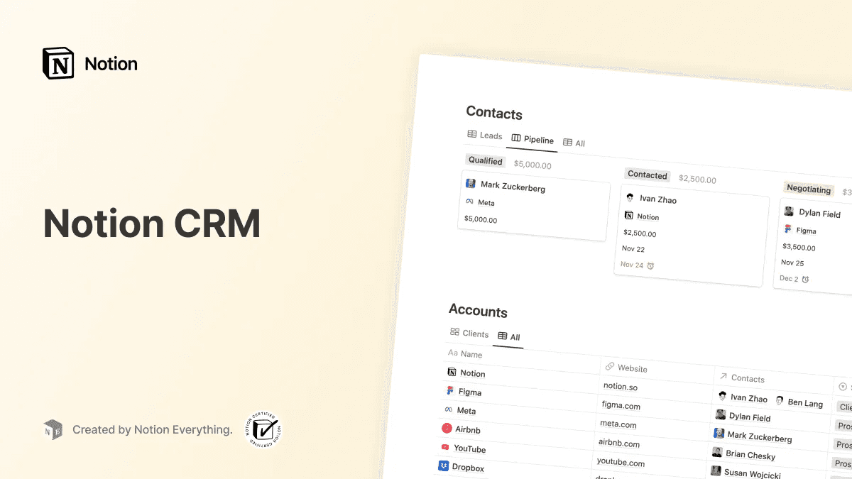 Managing clients, tracking sales pipelines, and maintaining strong business relationships can be overwhelming—especially when your data is scattered across different platforms. That’s where a reliable Notion CRM template can transform your workflow. Whether you're a freelancer, agency owner, or small business entrepreneur, having a centralized customer relationship management system in Notion helps you stay organized, close more deals, and scale your business efficiently.