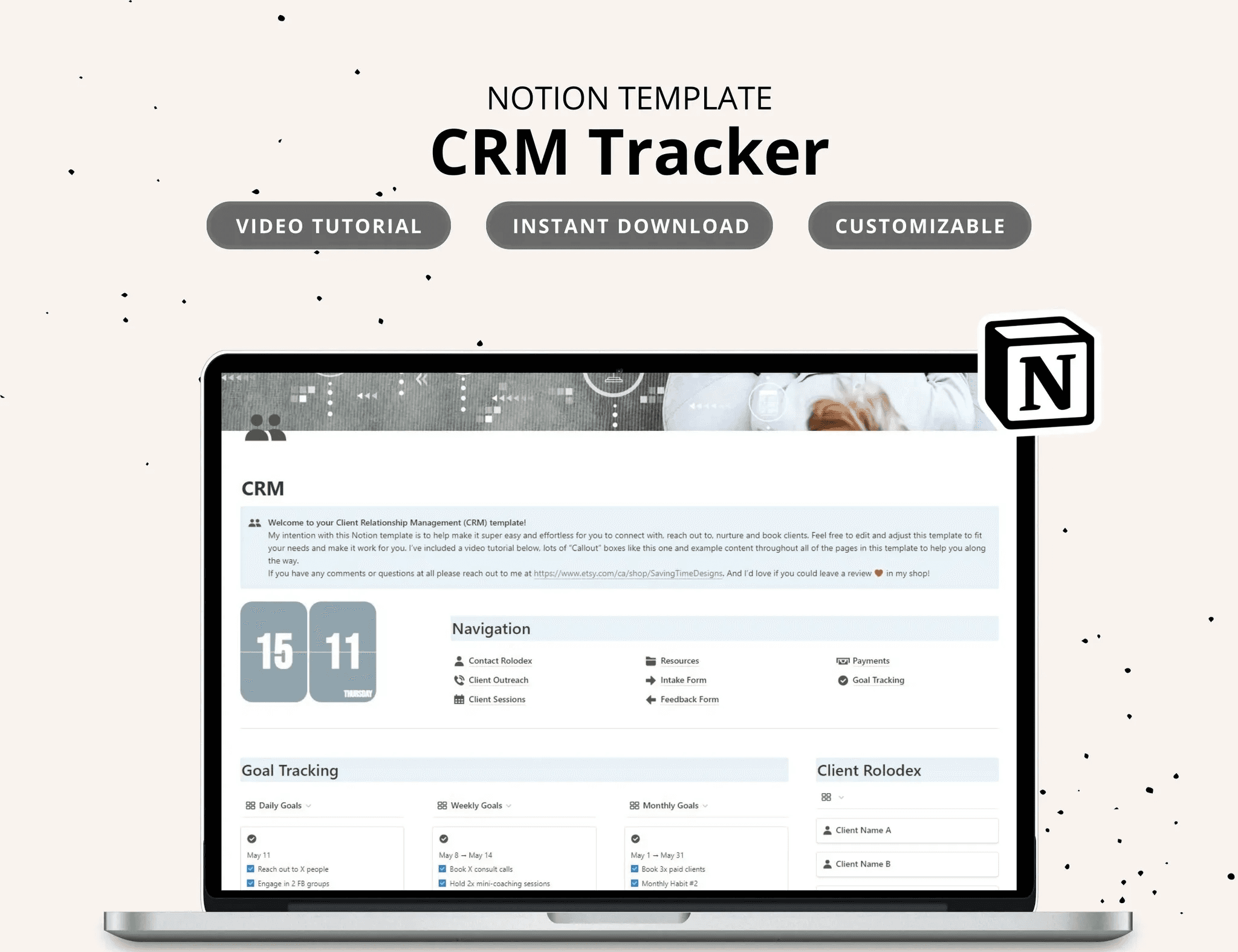 The CRM Tracker Notion Template is a complete client relationship and business management solution built for entrepreneurs, service providers, and coaches who want to build lasting client relationships and stay organized.