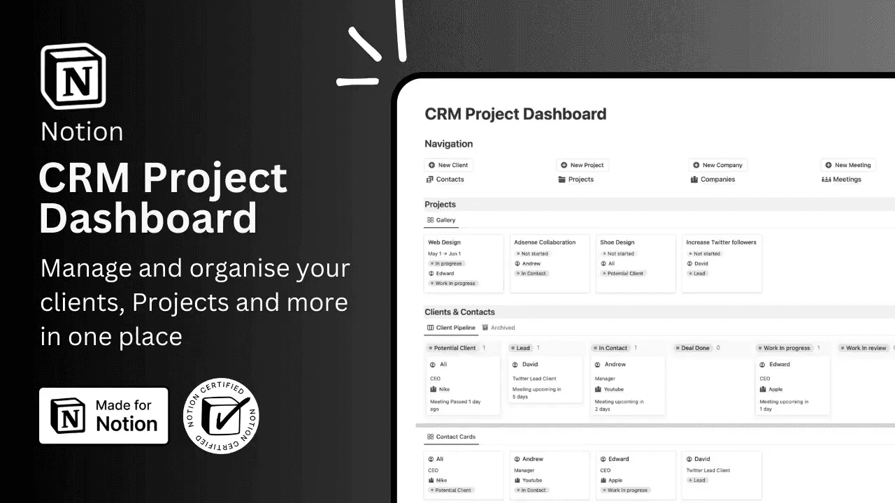 This CRM system is ideal for those who want to improve productivity, stay organized, and maintain strong client relationships—all within Notion.