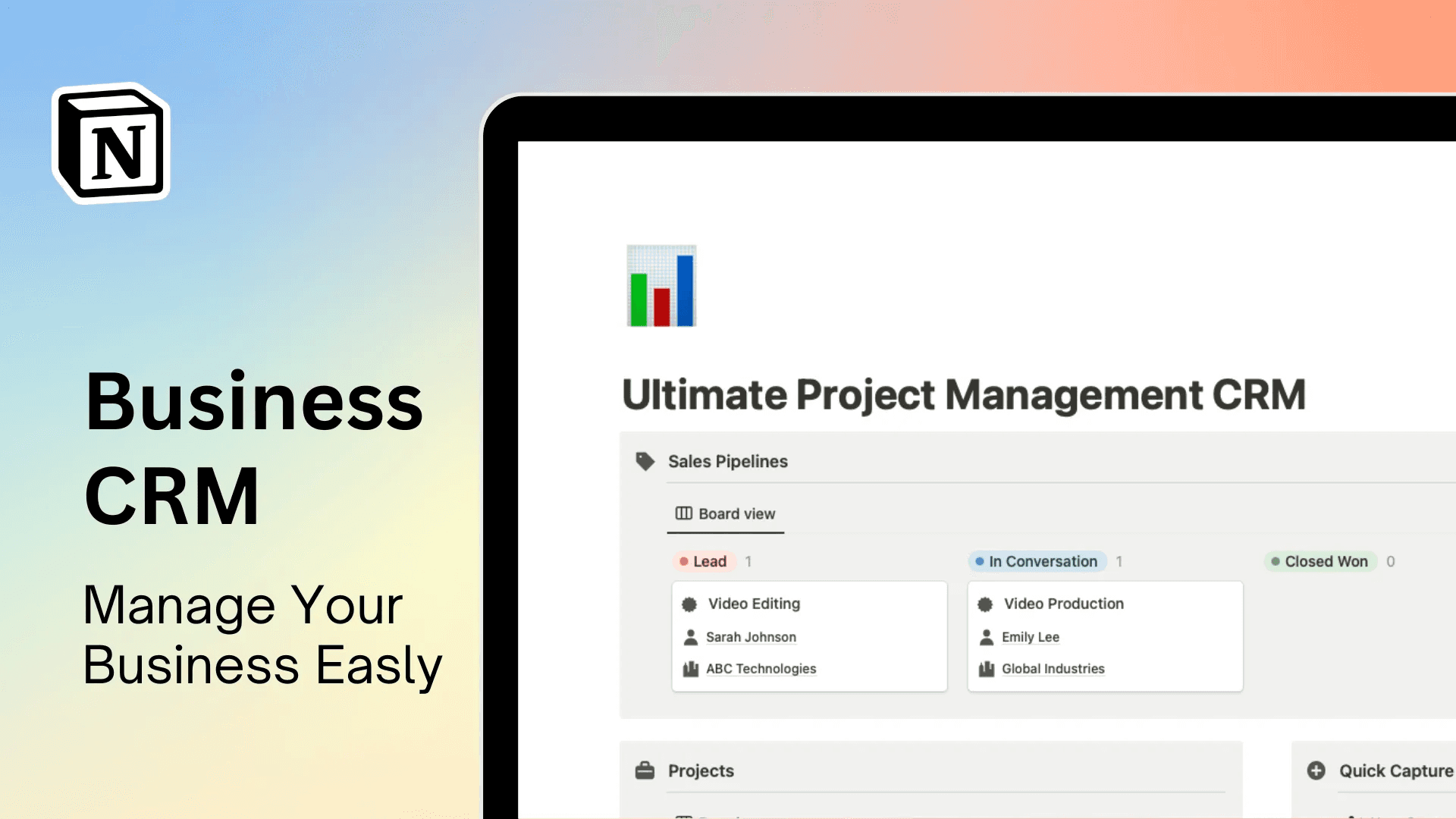 The Ultimate Notion Business CRM Template is a complete client and project management system built inside Notion, perfect for managing all your business processes in one centralized workspace.