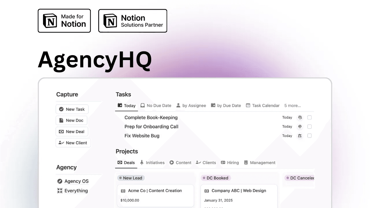 Perfect for startup agencies looking to build a productive client management hub in Notion.