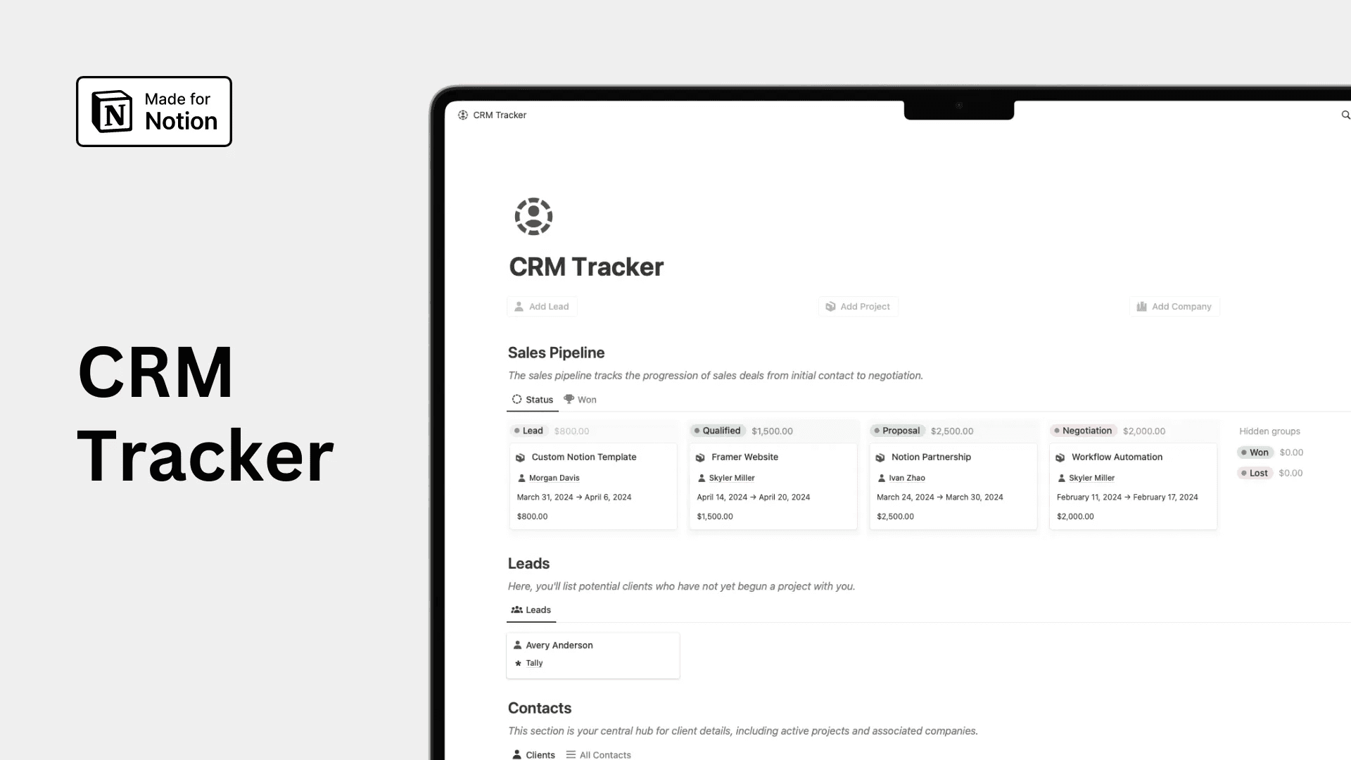 Ideal for businesses that want a powerful CRM system and financial tracker in one seamless Notion template.