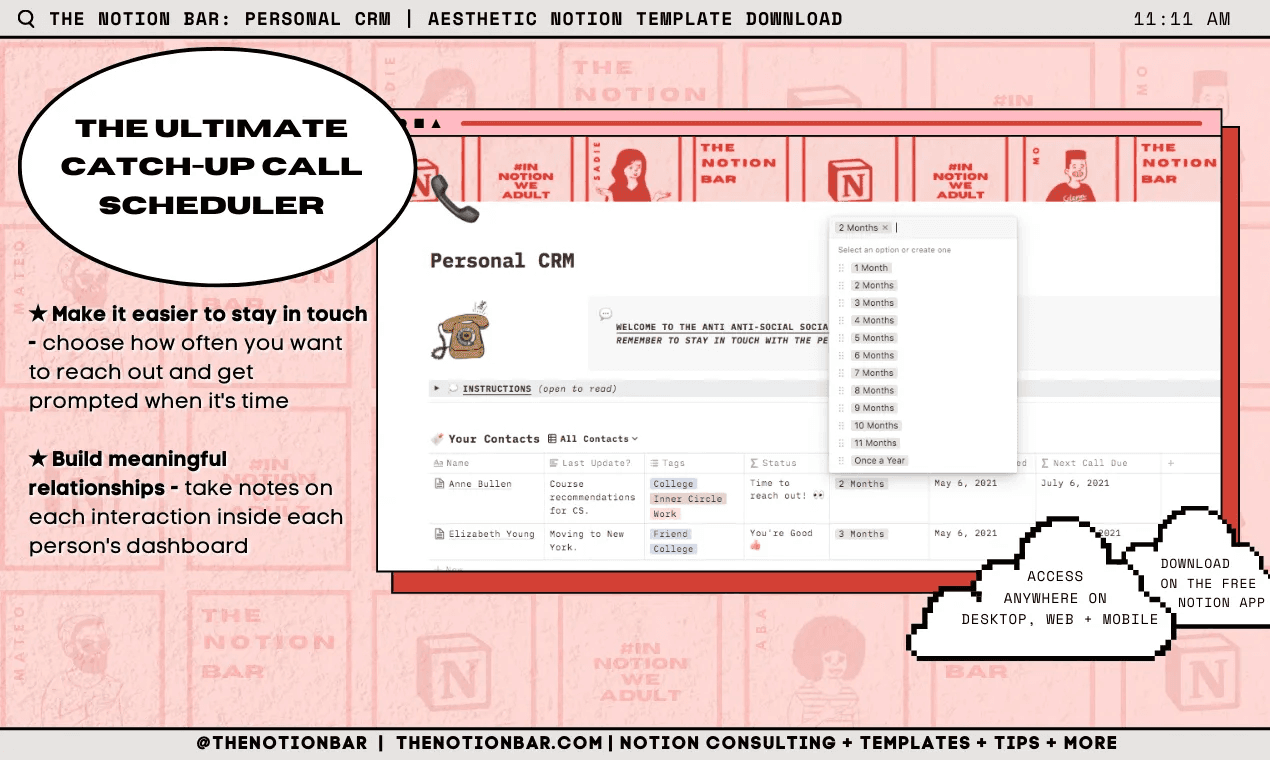 Stay connected and never miss a special moment or important follow-up again with this thoughtfully designed personal CRM for Notion.