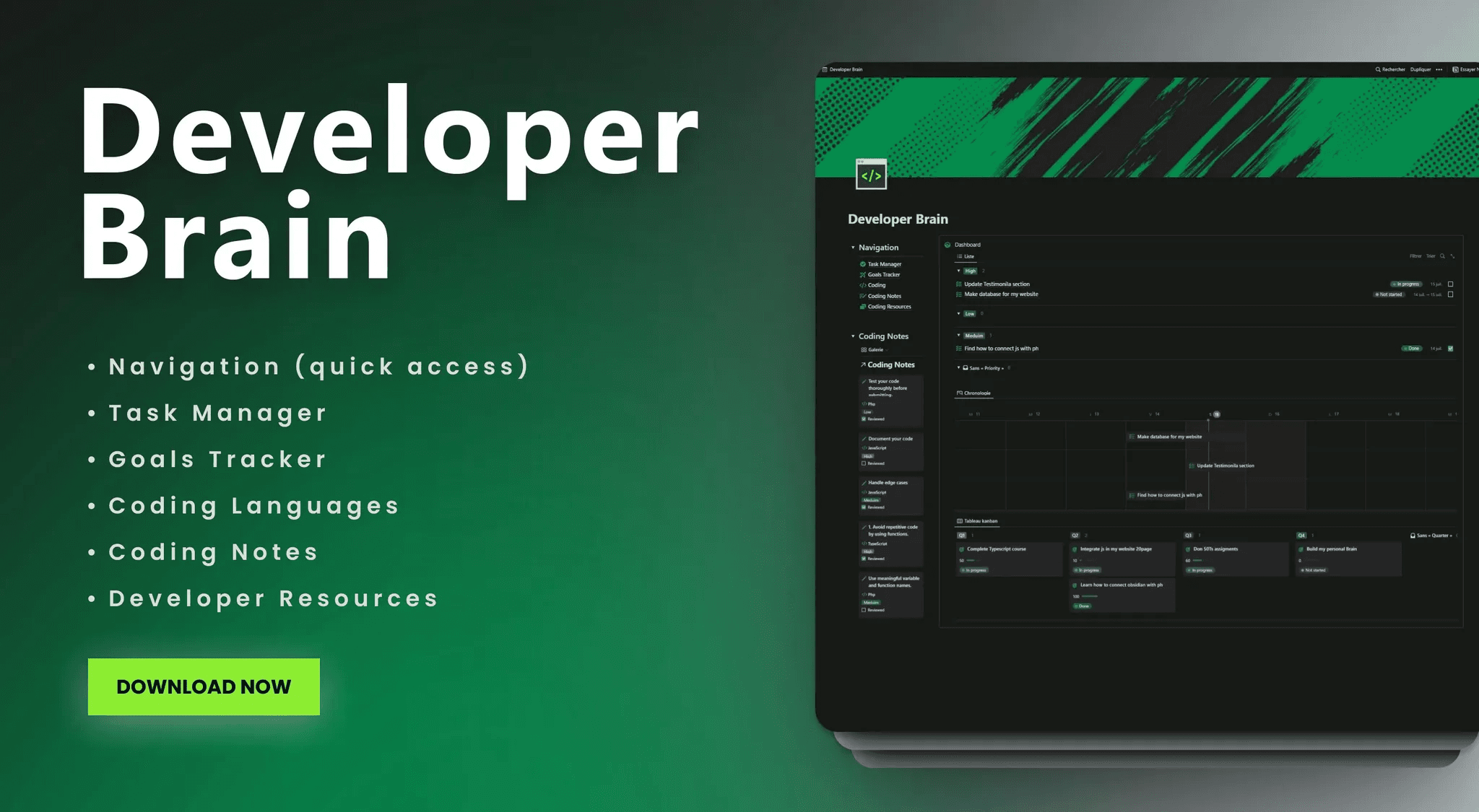 Build your own Second Brain in Notion with this powerful, all-in-one productivity template—completely free. Designed to help you organize everything from notes and goals to habits and personal knowledge, this system follows the PARA method and integrates several essential planning databases.