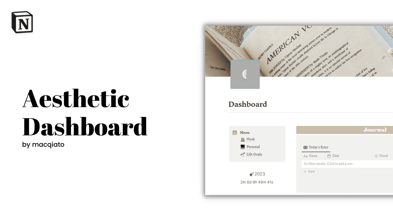 Elevate your personal planning with the Notion Aesthetic Dashboard—a visually pleasing life management system perfect for aesthetic enthusiasts. Designed to be both functional and beautiful, it offers a relaxing and inspiring workspace where you can plan your day and set goals with clarity.
