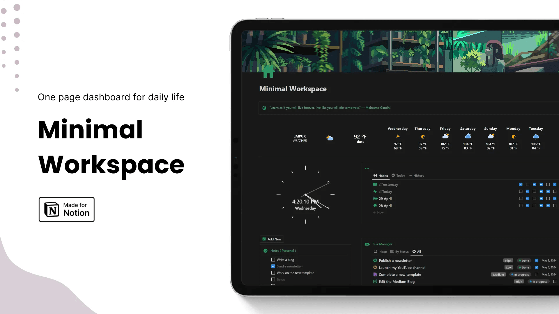 Whether you're juggling work projects, personal goals, or building better habits, this template brings everything together with a clean, intuitive layout.