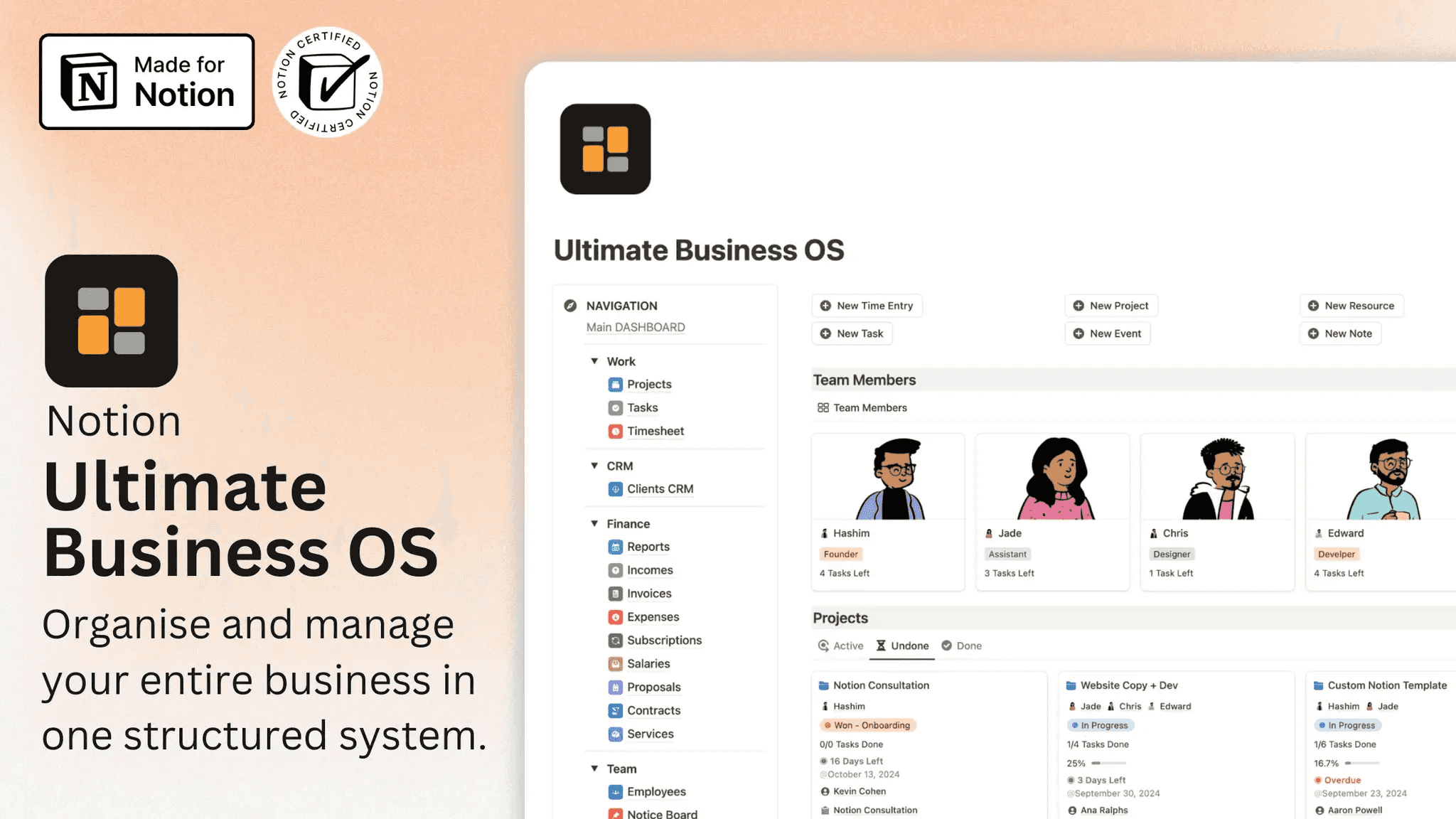 Optimize and streamline your business operations with Notion Business OS. This comprehensive Notion template is designed for agencies, entrepreneurs, startups, and small businesses to efficiently manage projects, clients, finances, and teams—all in one workspace.