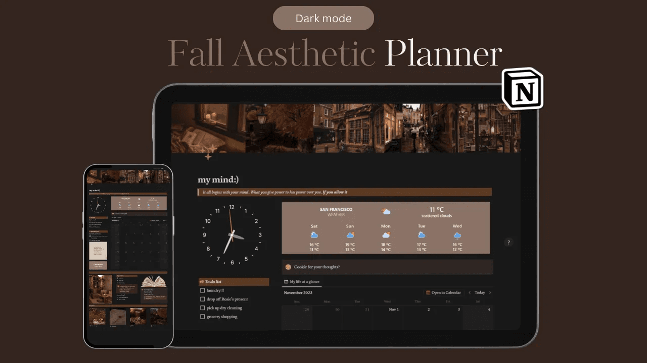 Embrace the cozy vibes of autumn with the Fall Aesthetic Notion Template—a beautifully crafted dashboard that helps you stay organized while enjoying the seasonal aesthetic. Whether you're a fan of warm tones or simply want a more inviting workspace, this template brings structure and style together.