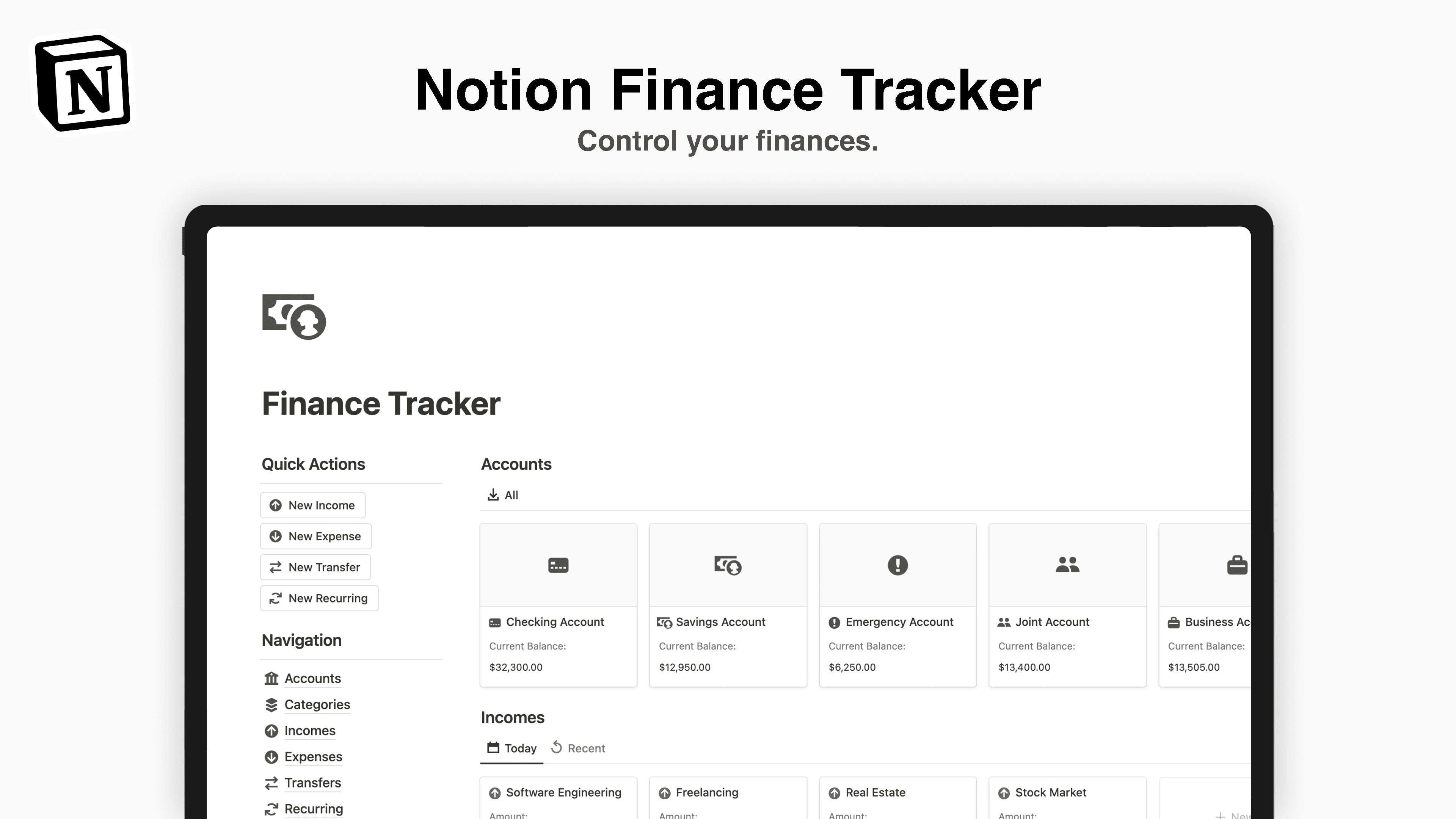 Notion Finance Tracker gives you a complete overview of your finances, designed to capture and organize all your financial data in one streamlined system. It offers essential tools for clarity and control, enabling you to make informed decisions based on real data.