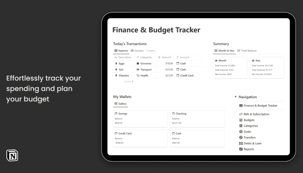 In summary, Notion is a versatile tool for personal finance and budgeting. With the right templates and systems, you can easily track cash flow, analyze spending habits, and make informed financial decisions. The templates listed above offer a range of features and designs to suit different needs and preferences. Whether you're starting your financial journey or a seasoned budgeter, there's a Notion template for you.