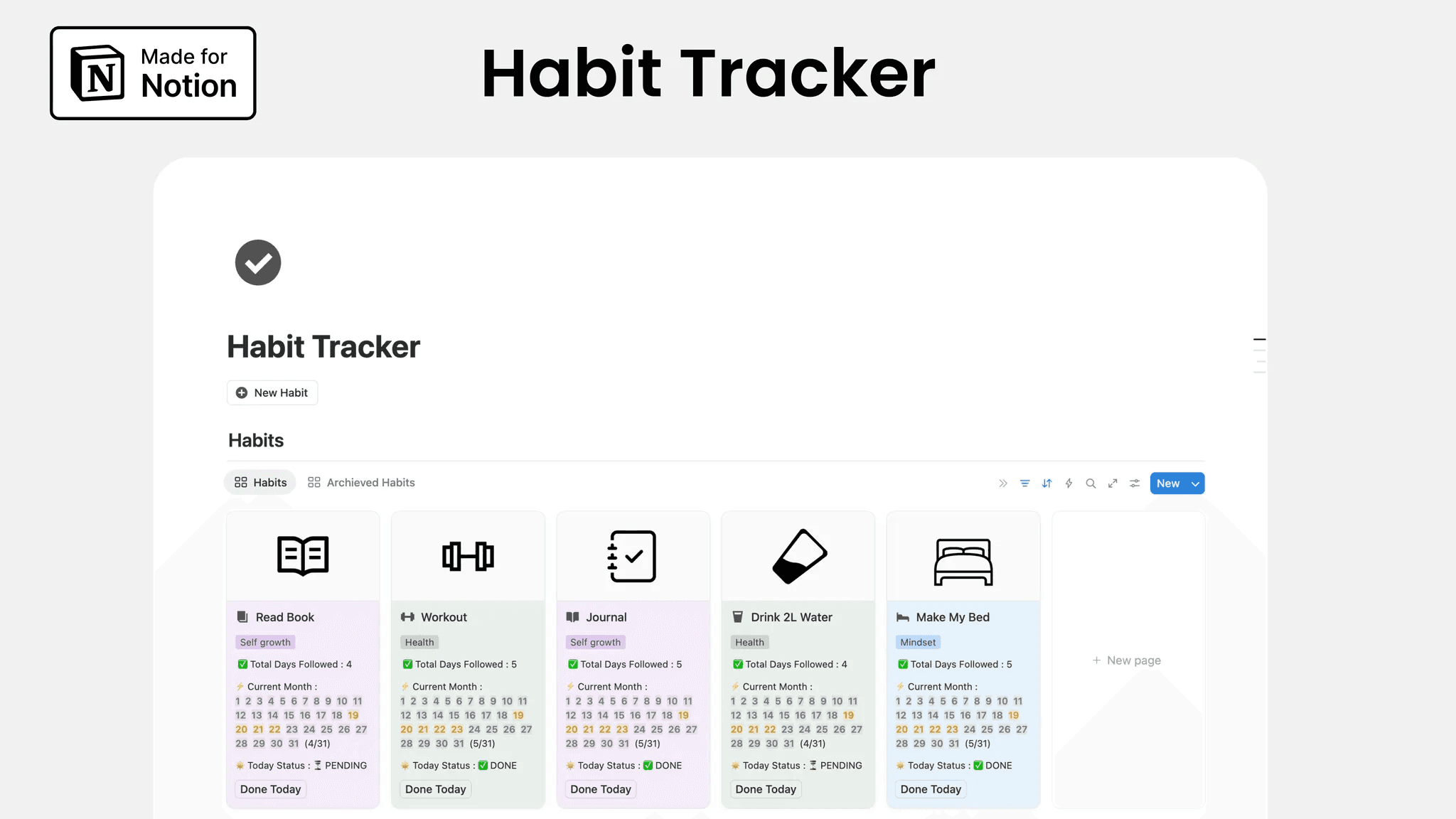 Notion Habit Chain is a powerful habit tracking system designed to improve long-term consistency through analytics, heatmaps, and gamification. It’s ideal for users who want deeper insights into their habit performance.