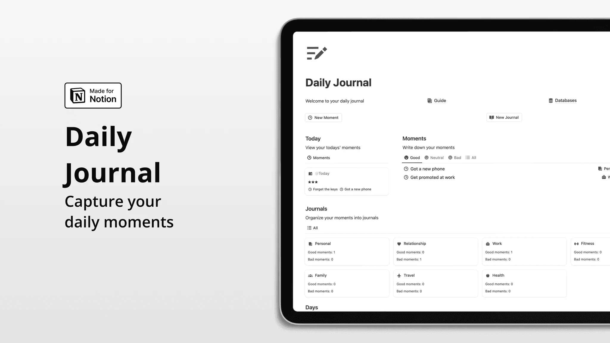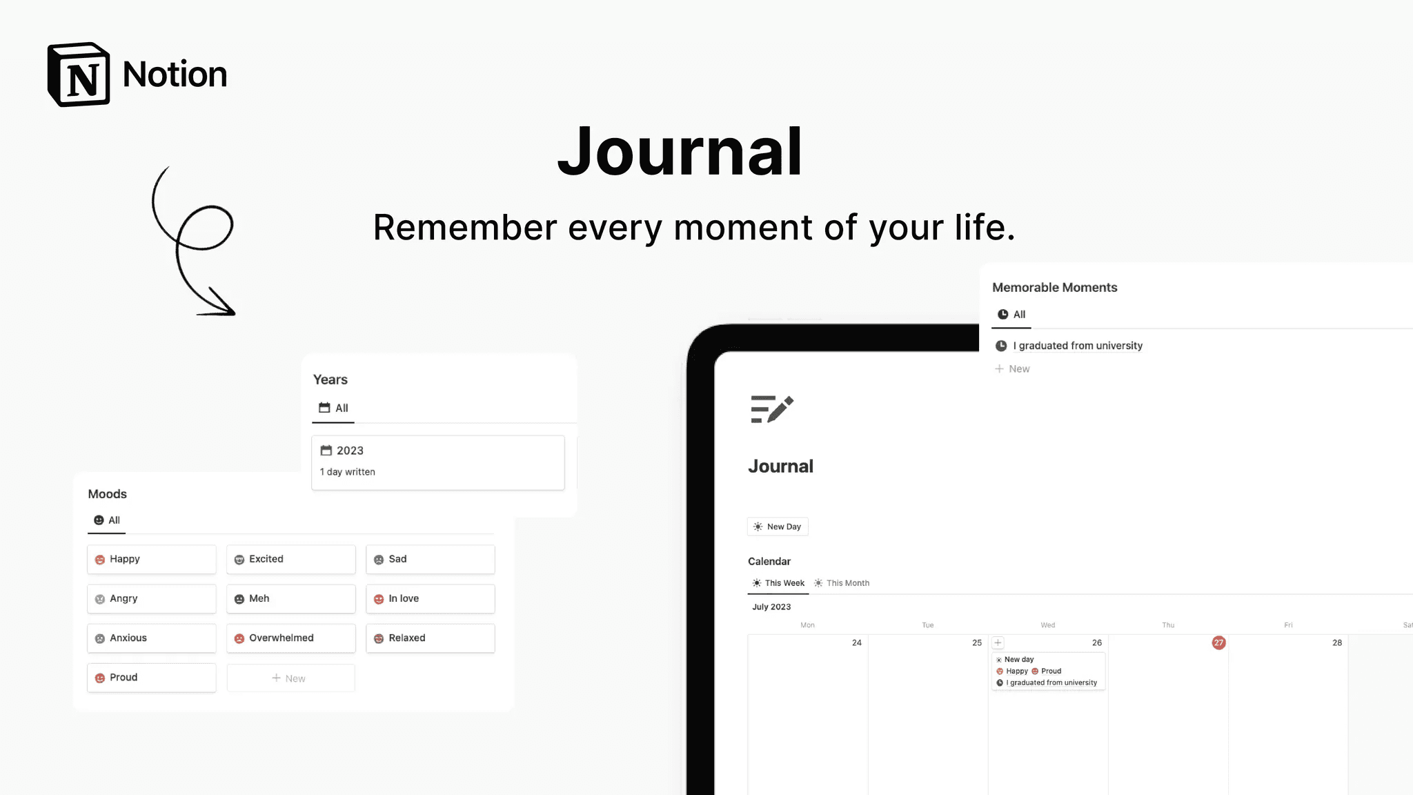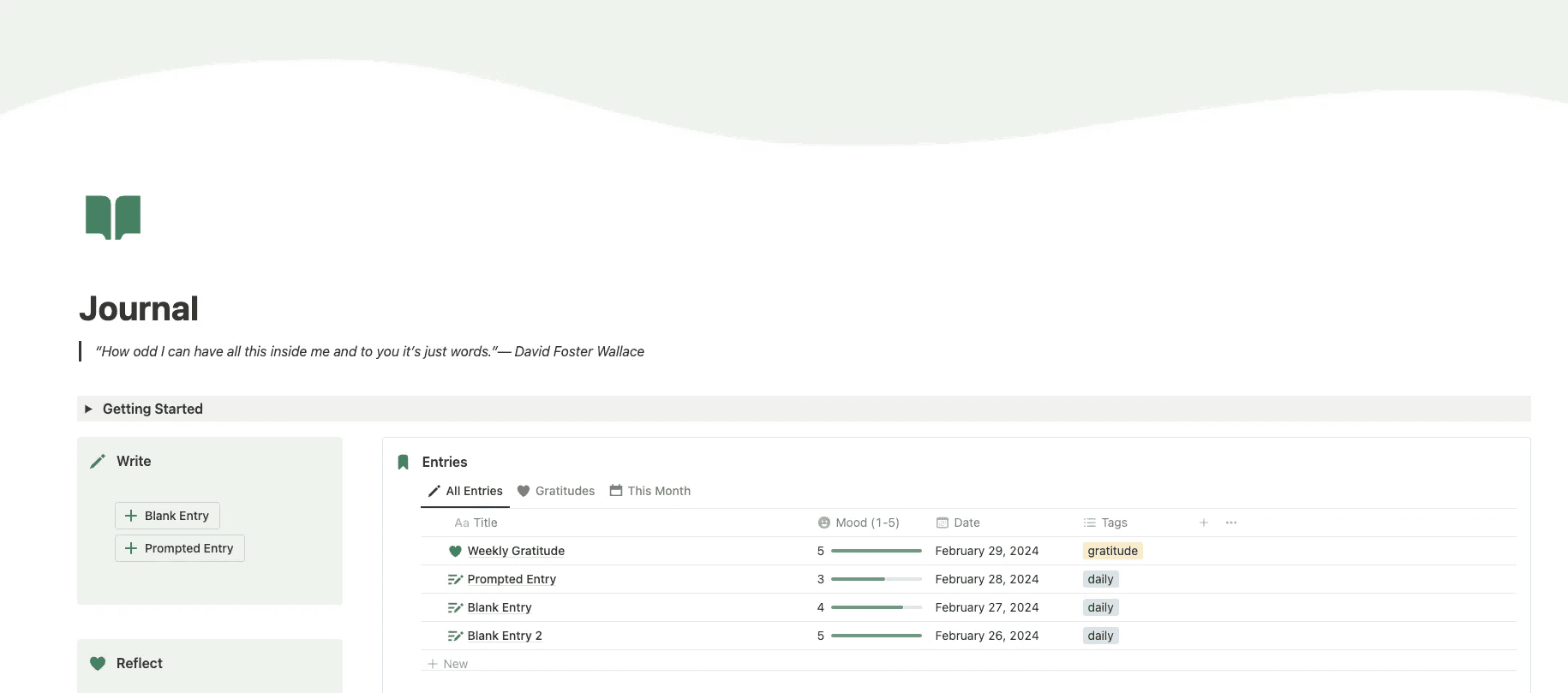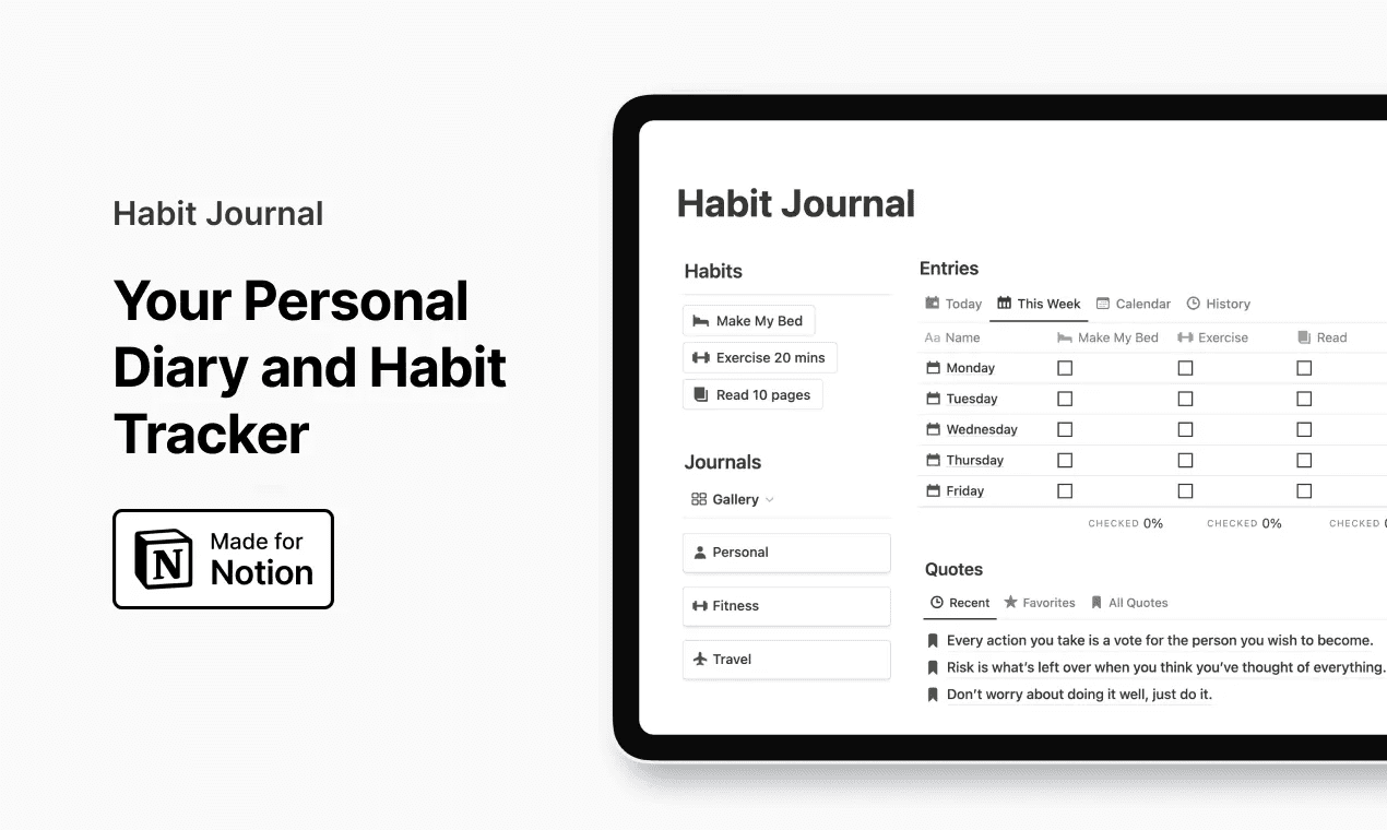 A great choice for anyone looking to build a consistent journaling habit in Notion.