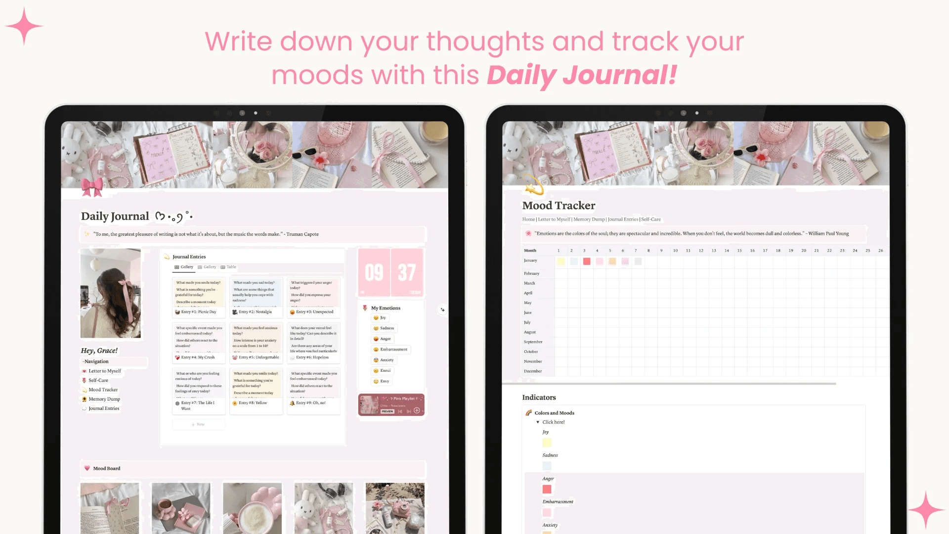 The templates featured in this blog are ideal for enhancing your emotional well-being, tracking your personal growth, and creating space for intentional reflection. Whether you prefer a minimalist layout or an aesthetic all-in-one dashboard, there's a perfect journaling system here to match your lifestyle.