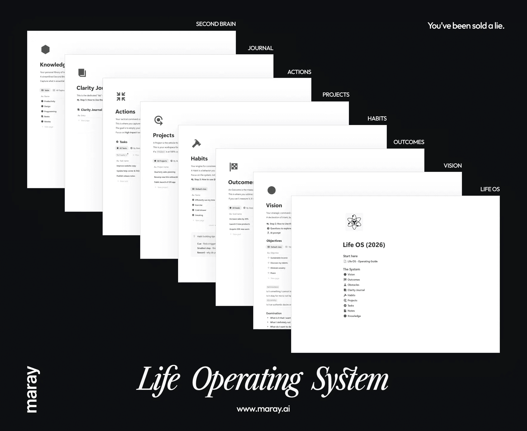 The Life OS: The Personalized Clarity Engine is a structured Notion system built around self-research, AI workflows, and clarity-driven productivity. It adapts to your working style instead of forcing one.