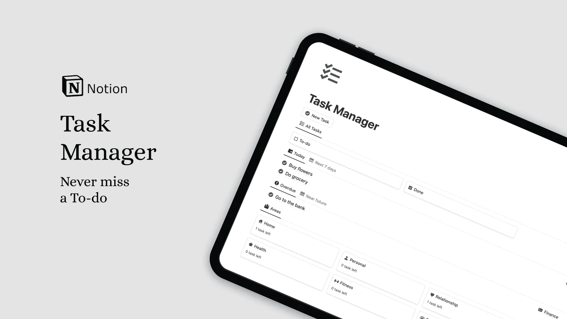 Stay on top of your daily tasks, priorities, and deadlines with this Notion Task Manager. This template provides a clear and structured system to ensure that no important task is overlooked.