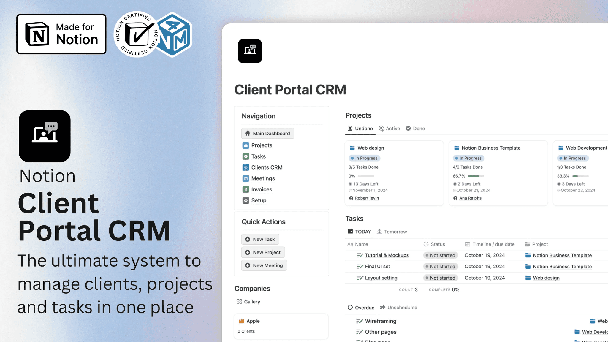 Enhance client relationships with an all-in-one Notion CRM Client Portal. This template simplifies client tracking, project management, invoicing, and communication, ensuring a smooth client experience.
