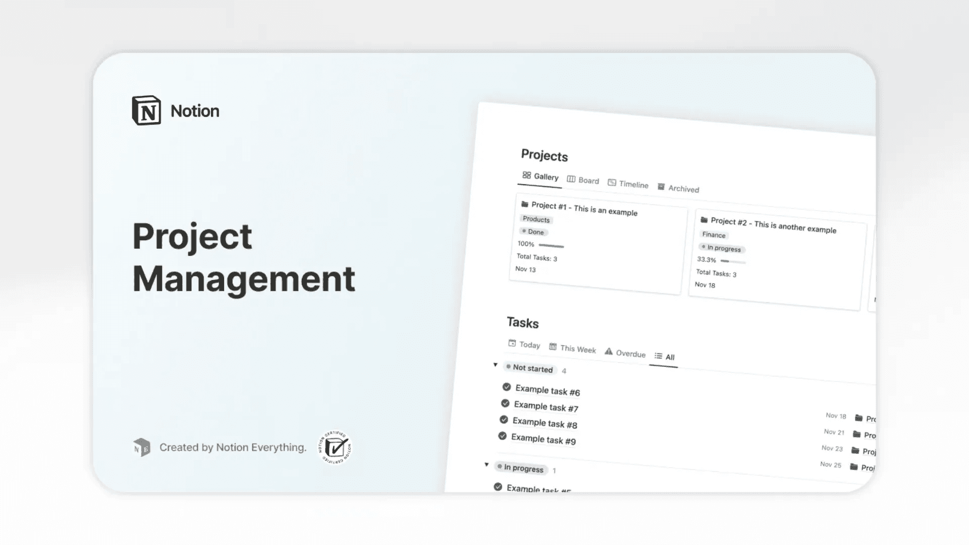 This versatile Notion project and task management template is perfect for anyone looking to organize projects, break down tasks, and track progress effortlessly. With a minimalist and user-friendly design, it helps you stay focused and productive.