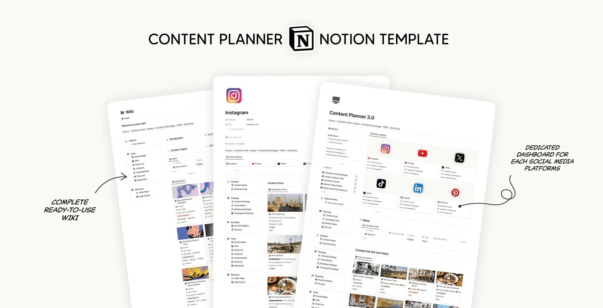 The Notion Content Creator Kit is a complete social media content planning and management system built inside Notion. It’s designed for content creators, freelancers, social media managers, and agencies looking to streamline workflows, improve consistency, and scale their brand.