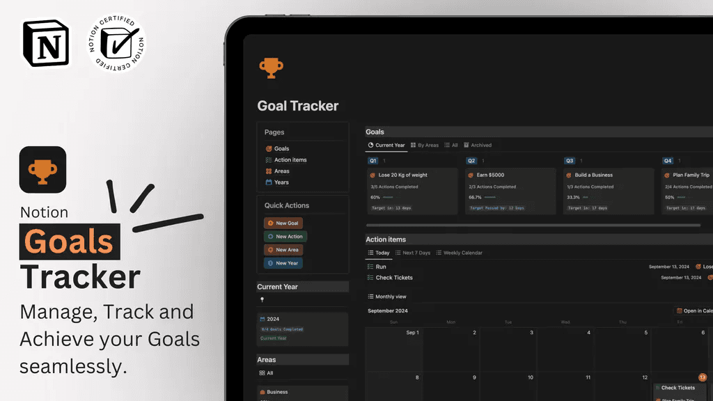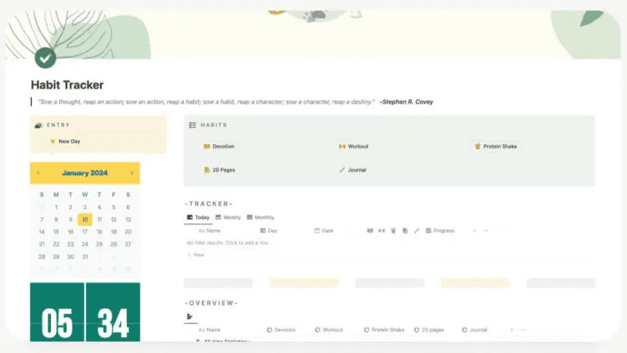 This all-in-one Notion dashboard lets you track daily habits, review statistics, and journal progress—all in one place.
