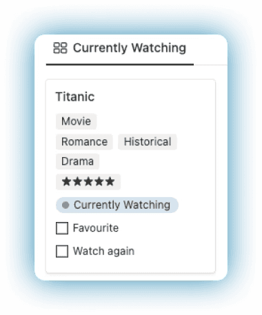 • Categorize content as Watching, Planned, or Completed