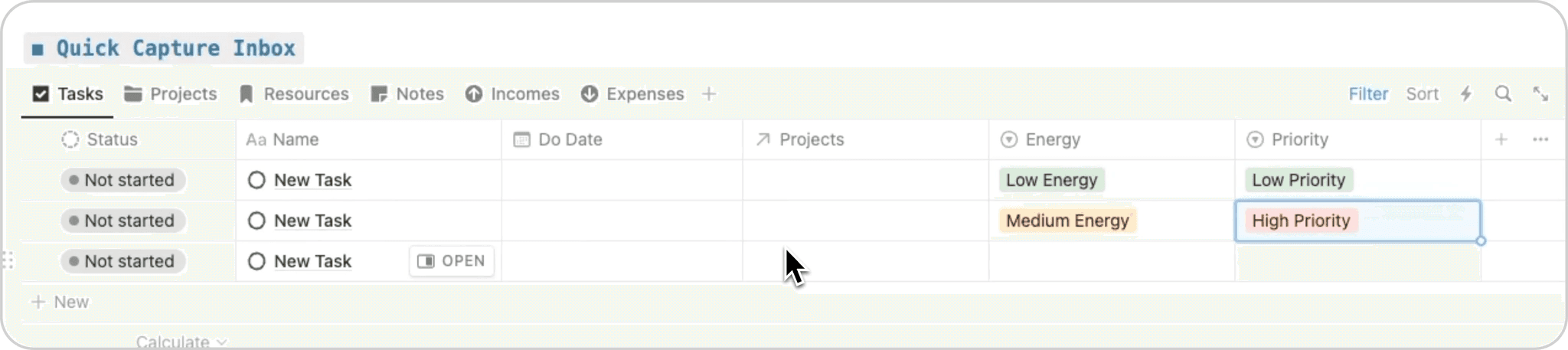 Stay organized and never lose an important idea again with the Quick Capture Inbox inside Notion Life OS. This streamlined capture system allows you to instantly record tasks, projects, notes, reminders, and ideas the moment they come to mind.