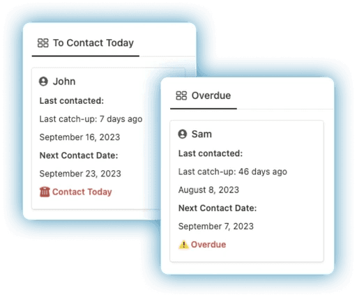 The Contacts Manager inside Notion Life OS allows you to organize and manage your entire personal and professional network in one structured database. Keep track of family, friends, colleagues, clients, and important connections without relying on scattered notes or multiple apps.