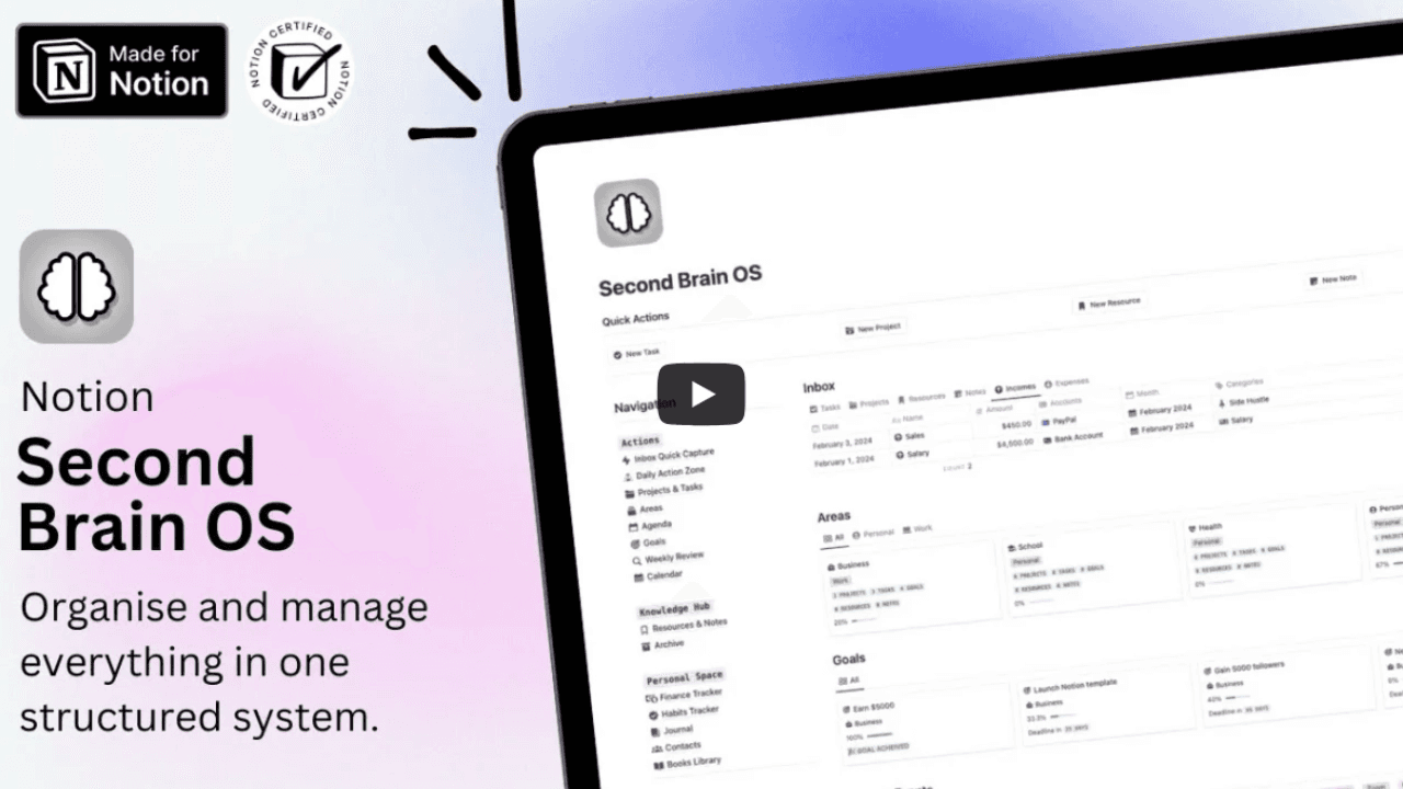 Watch our detailed tutorial to see what’s inside the Notion Second Brain OS and how everything works.