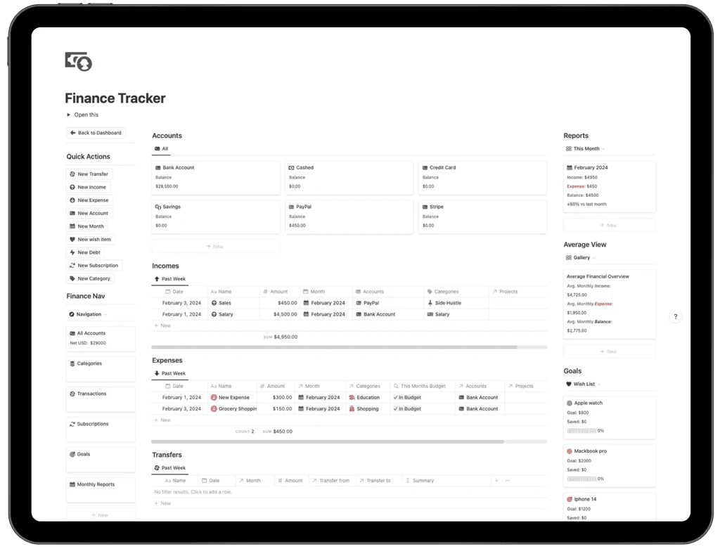 The Finance Tracker inside the Second Brain OS is a complete personal finance management system built in Notion to help you track income, expenses, accounts, subscriptions, and financial goals in one organized dashboard.