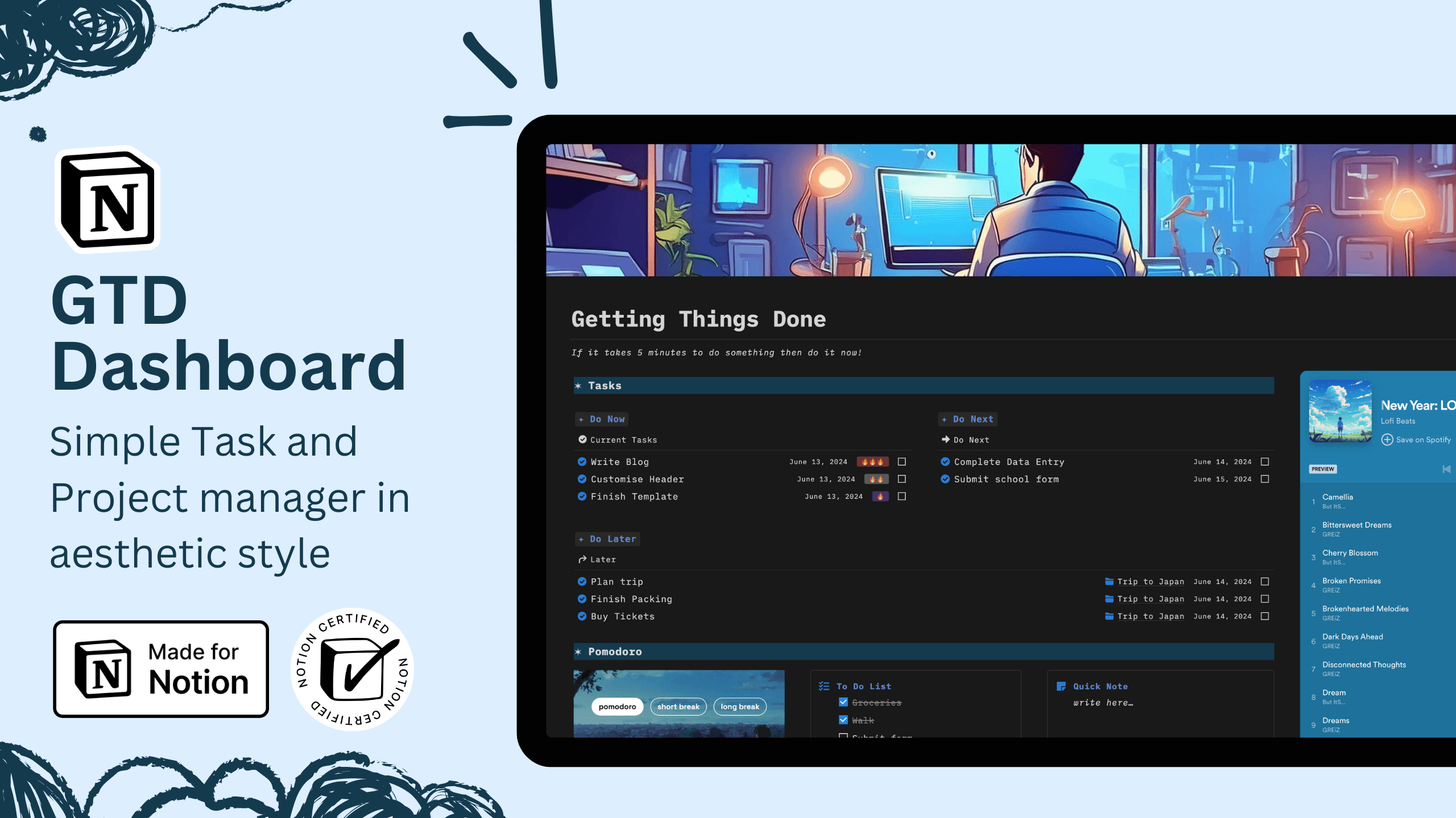 Easily manage and track your courses, assignments and school life with this Aesthetic notion template