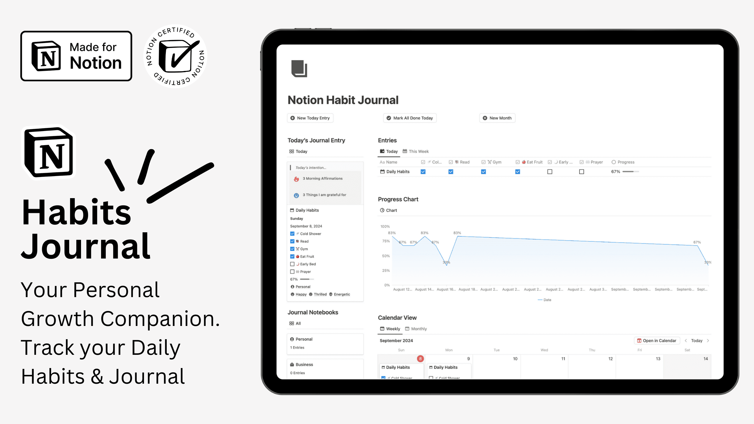 Manage your Daily Habits and Track your Journal entries with Monthly Habit reports and Charts.